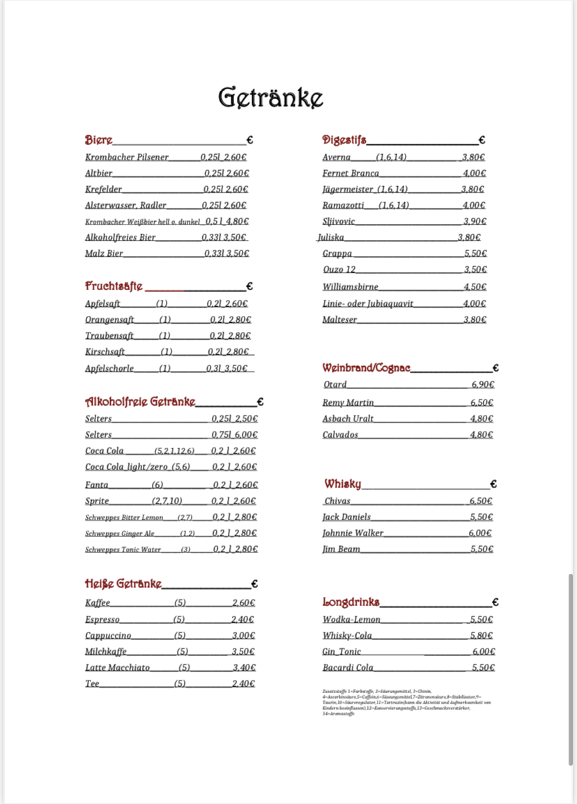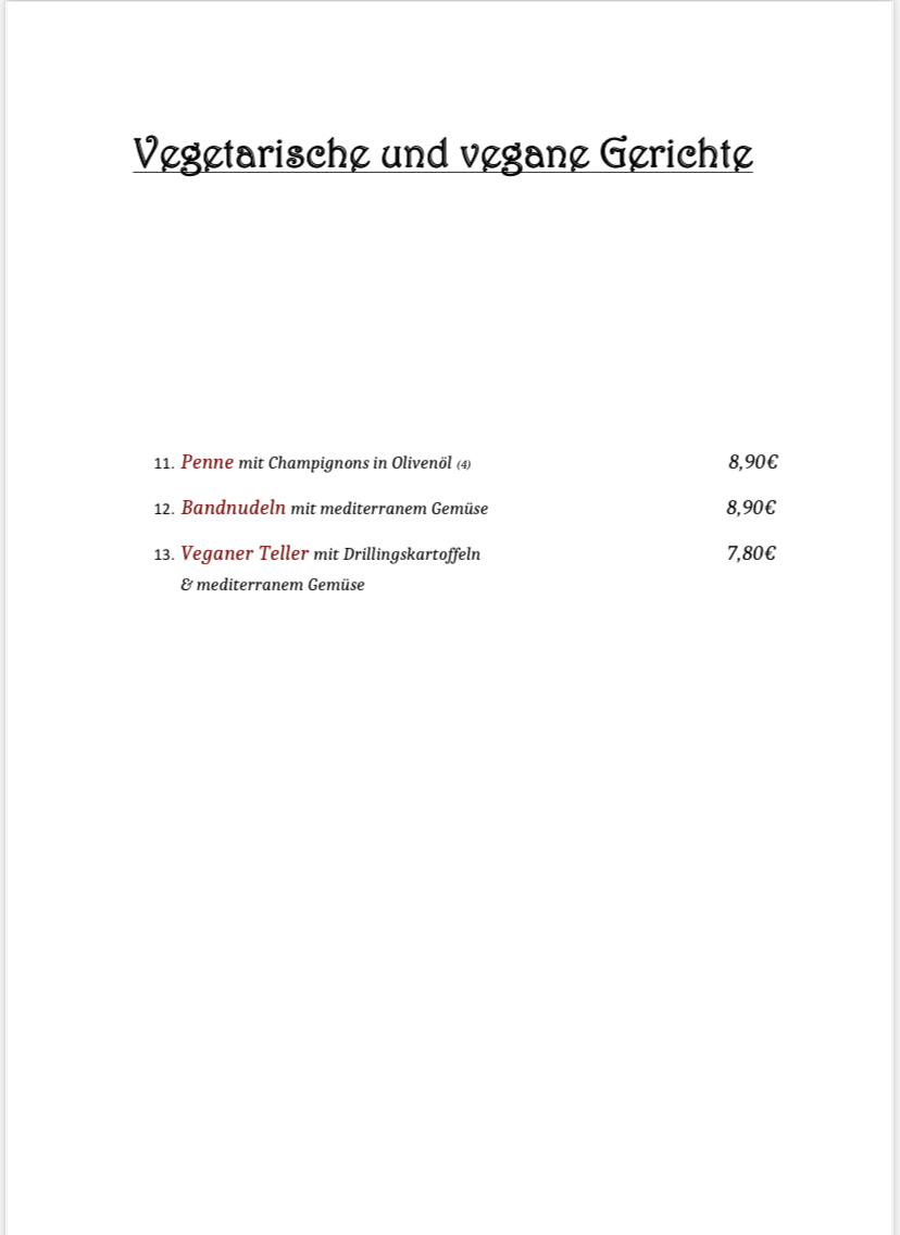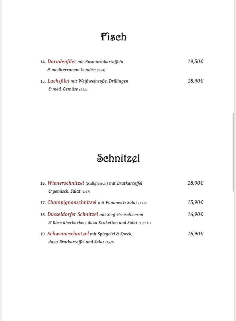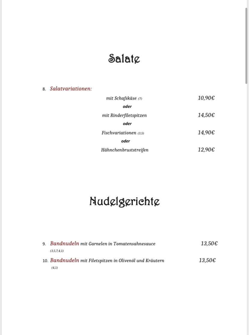 Restaurant Rhodos Menu